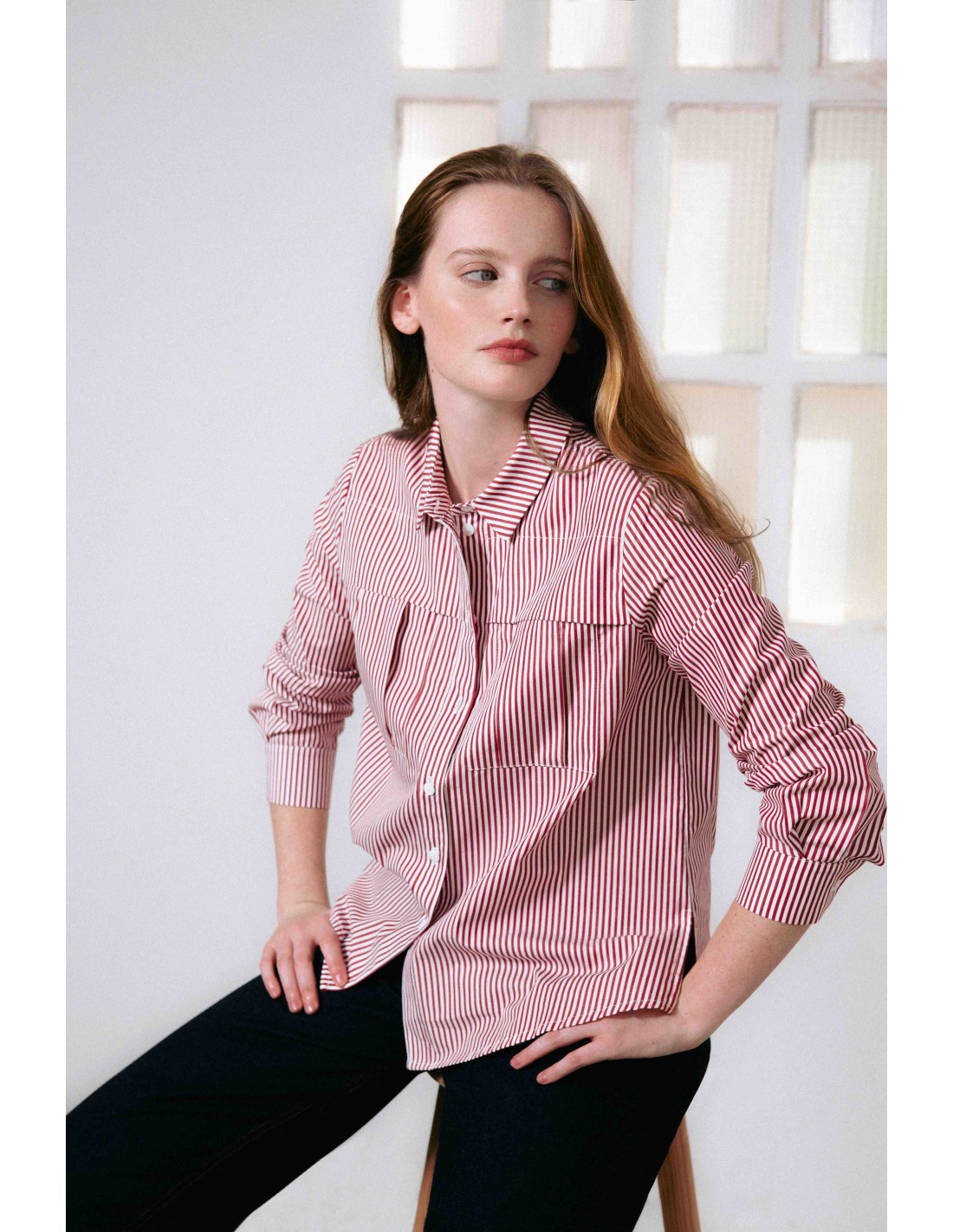 Camisa Oversize con bolsillos, tapeta maxi y aberturas.