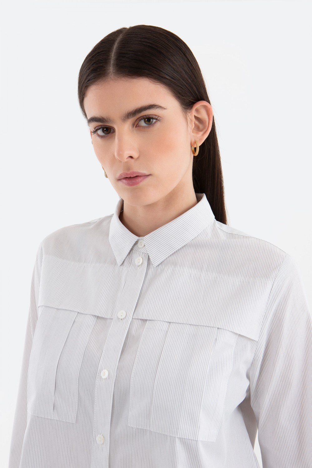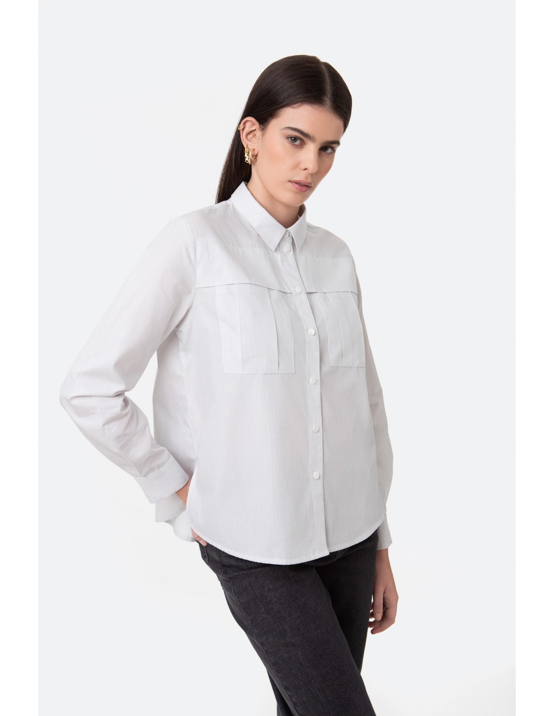 Camisa oversize con bolsillos, tapeta maxi y aberturas.