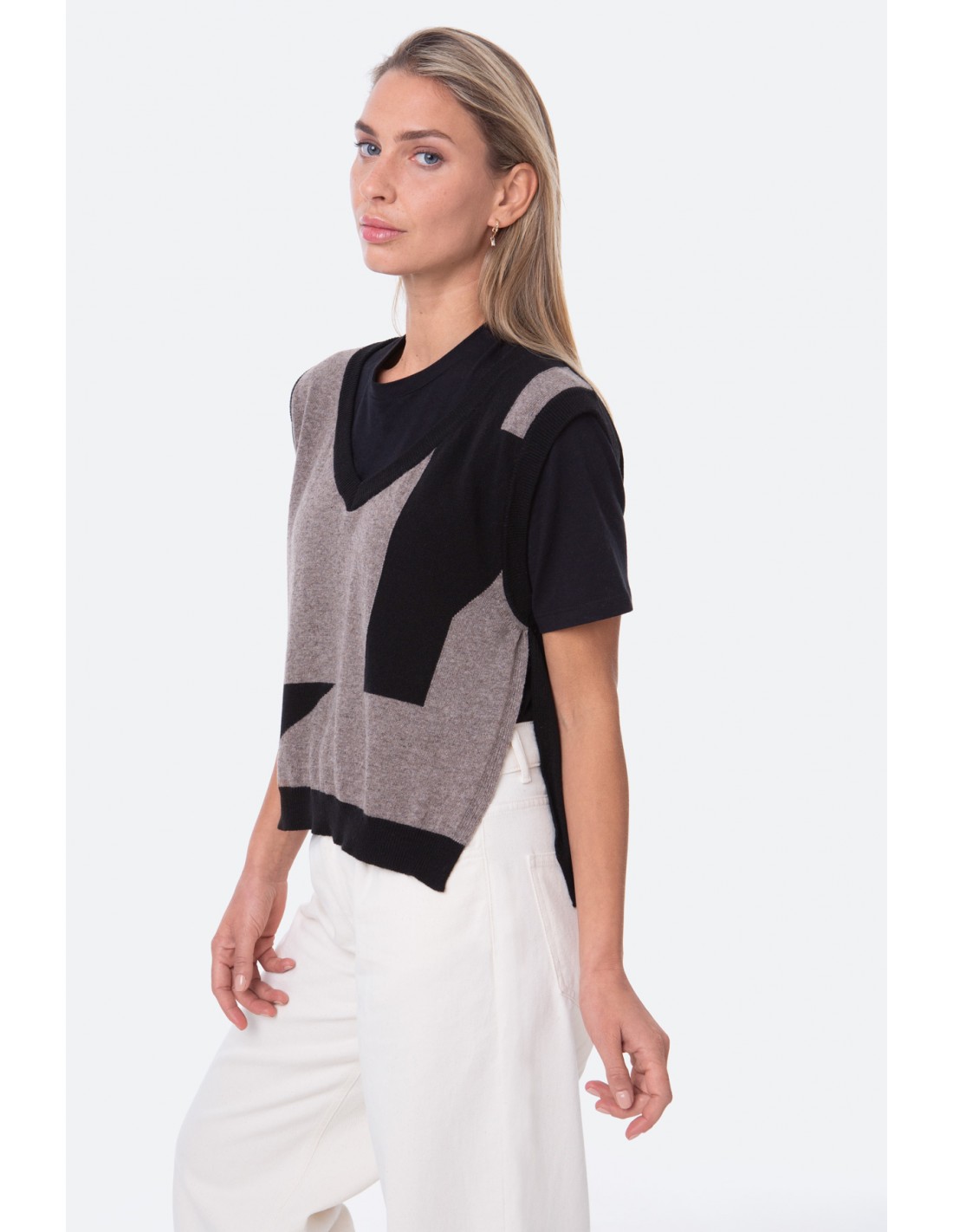 Chaleco con dibujo en intarsia y aberturas en los laterales.