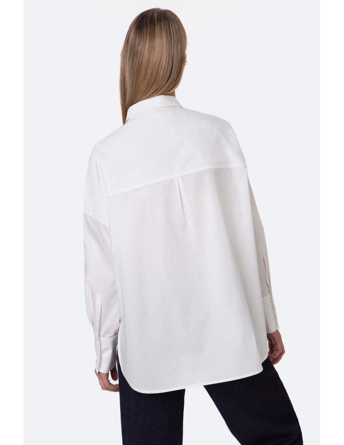 Blusa estampada con escote en pico y abotonado al centro. Fabricado en un tejido fluido con print tie-dye geométrico.