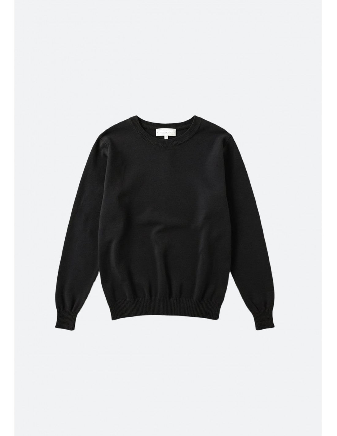 Jersey con cuello redondo y manga larga. Diseño atemporal con nervio relieve frontal y en costuras. El cuello, bajo y puño son en canalé. Tejido con efecto lavado a la piedra.