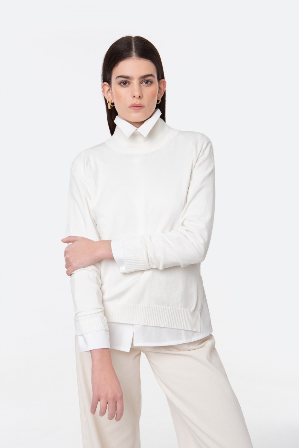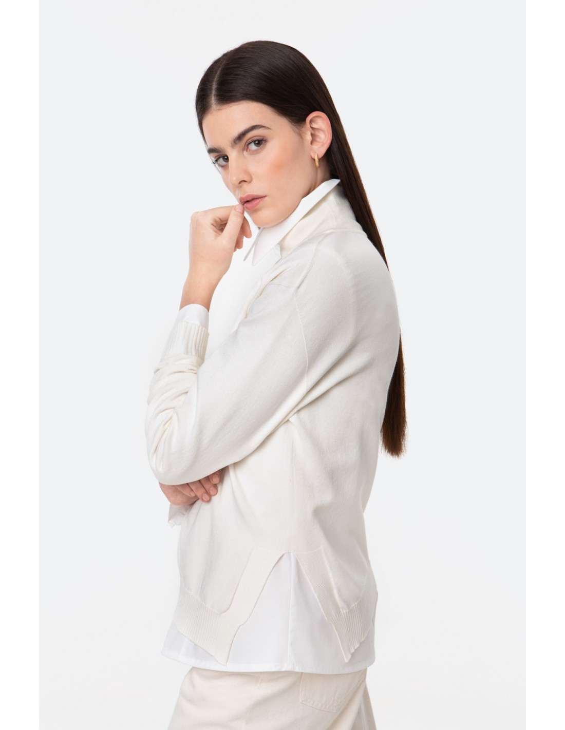 Basic tricot jumper with V-neck, long sleeves and dropped shoulder.