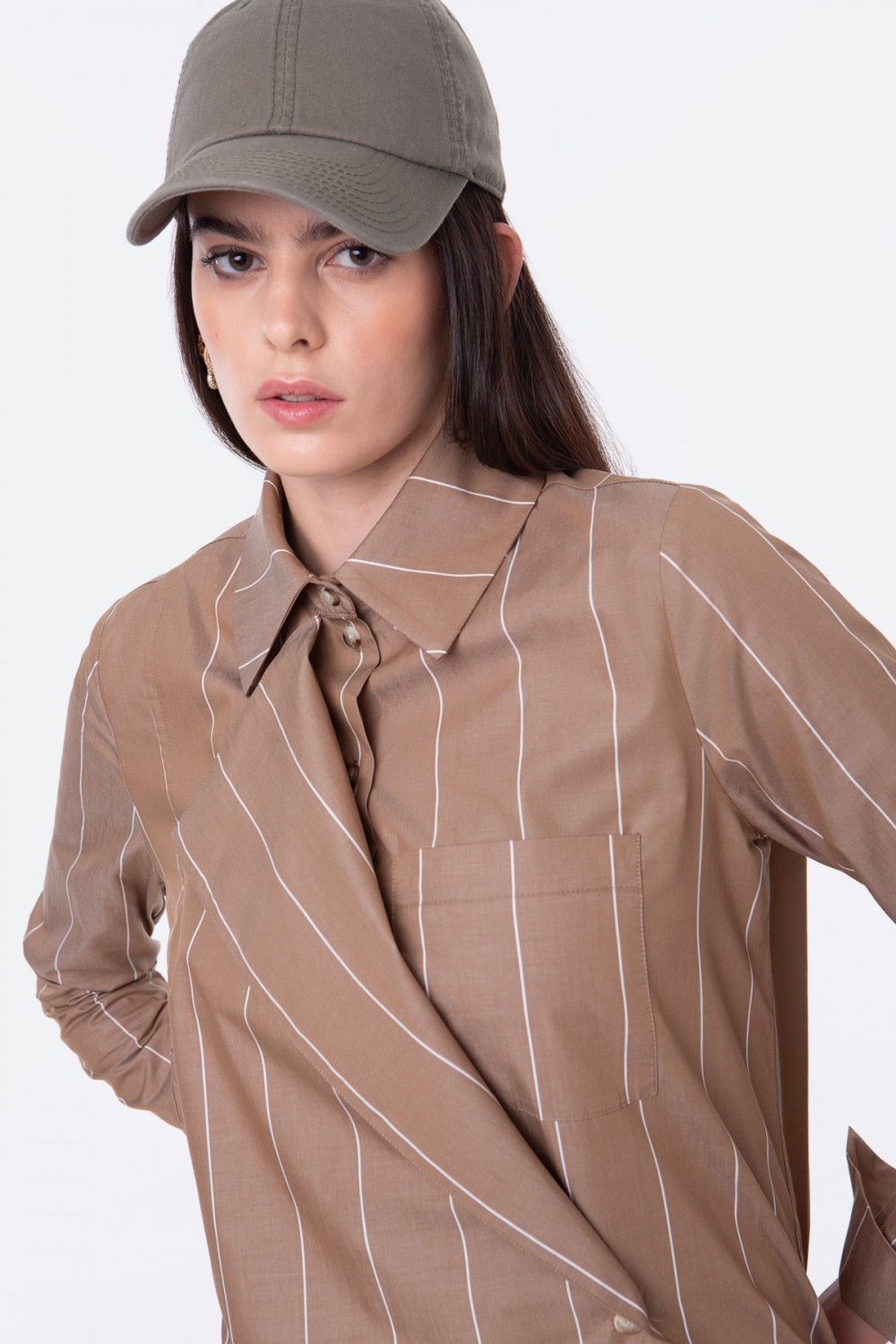 Shirt in cotton linen, short sleeves with dropped shoulder and folded cuffs.